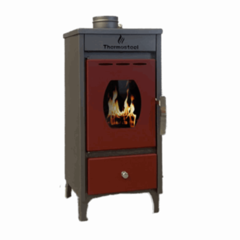 Χ10- Θερμάστρα ξύλου ατσάλινη 10,5kw σε γκρι-κόκκινο χρώμα