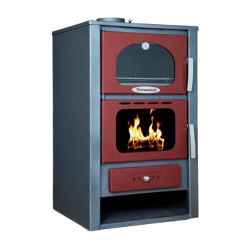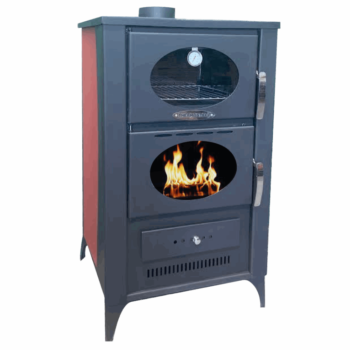 Χ70 – Θερμάστρα ξύλου ατσάλινη με φούρνο 15,5kw γκρι-κόκκινο