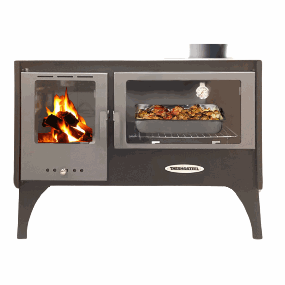 Θερμάστρα ξύλου ατσάλινη με πλάι φούρνο εμαγιέ 11, 2kw